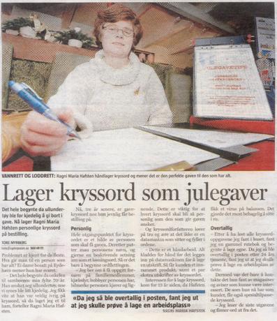 Omtale i Agderposten mandag 28.11.2005
